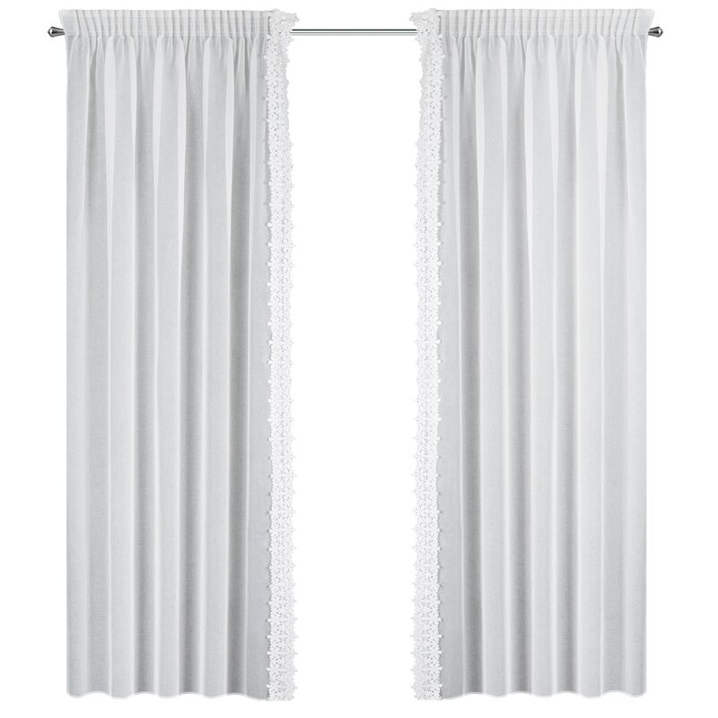 Komplet 2 szt. firan białych zdobionych na brzegach subtelną koronką 140x270 cm taśma SUZAN