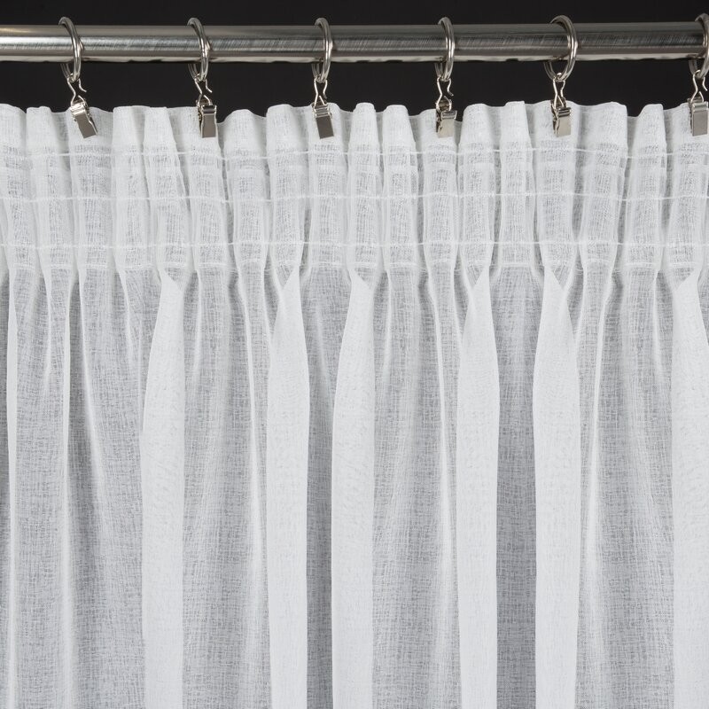 Firany posiadają taśmę marszczącą z funkcją tunelu, która umożliwia zawieszenie zarówno na żabki, jak i bezpośrednio na karnisz drążkowy.
