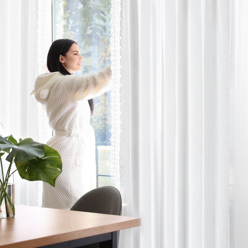 Elegancki i subtelny komplet 2 szt. firan gotowych z etaminy to doskonały wybór dla osób ceniących klasyczne, delikatne dekoracje okienne z romantycznym akcentem. Lekka, półtransparentna tkanina pięknie rozprasza światło, nadając wnętrzu lekkości i przytulności.
