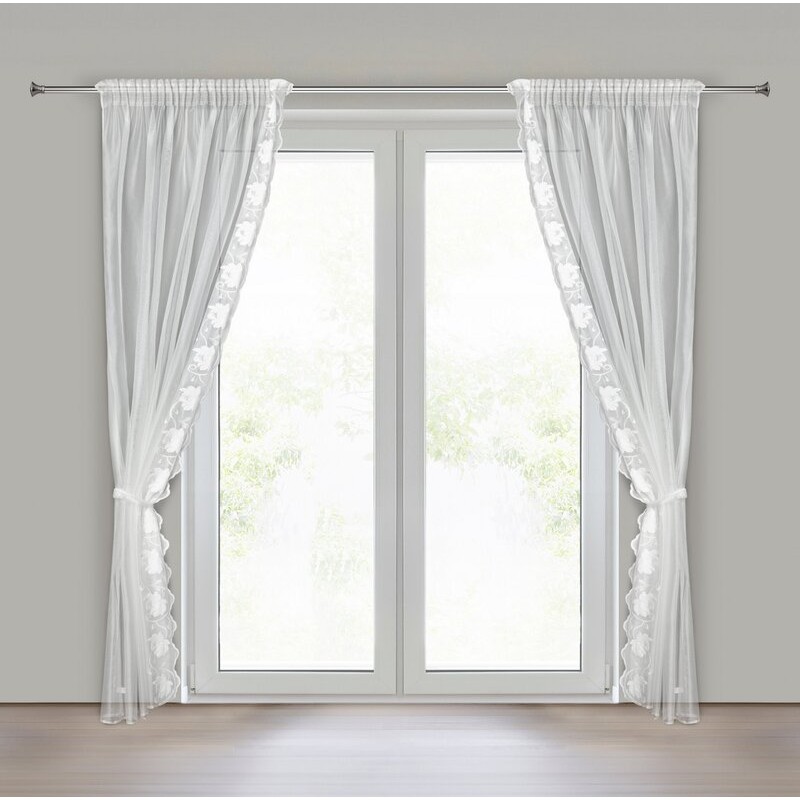 Komplet firan dekoracyjnych zdobinych obszywką szerokość: 140 cm, długość: 270 cm, kolor: biały, Skład: 100% poliester