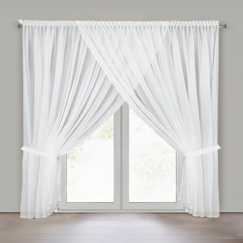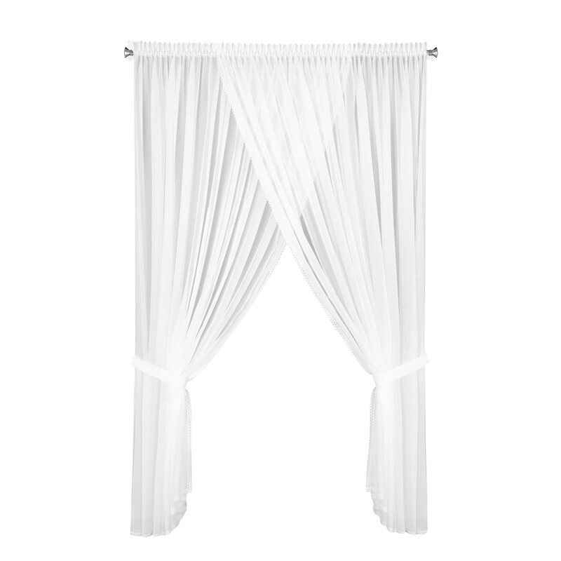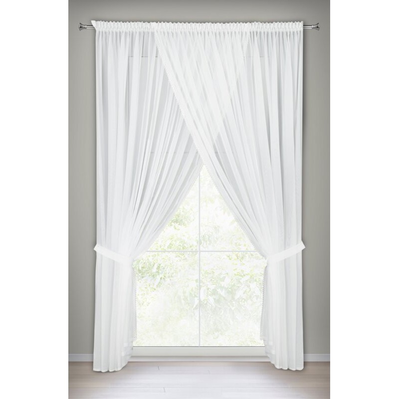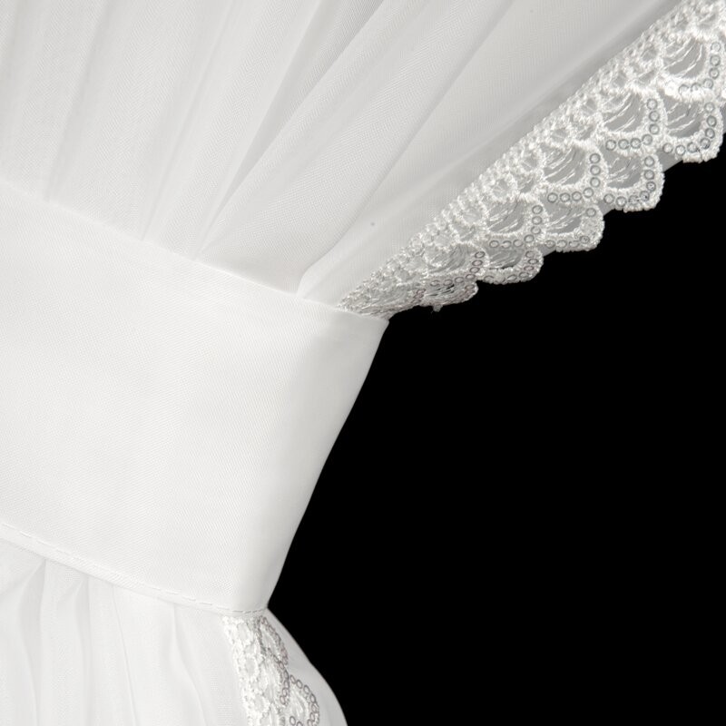 Firana gotowa z ozdobną obszywką szerokość: 140 cm, długość: 250 cm, kolor: biały, Skład: 100% poliester