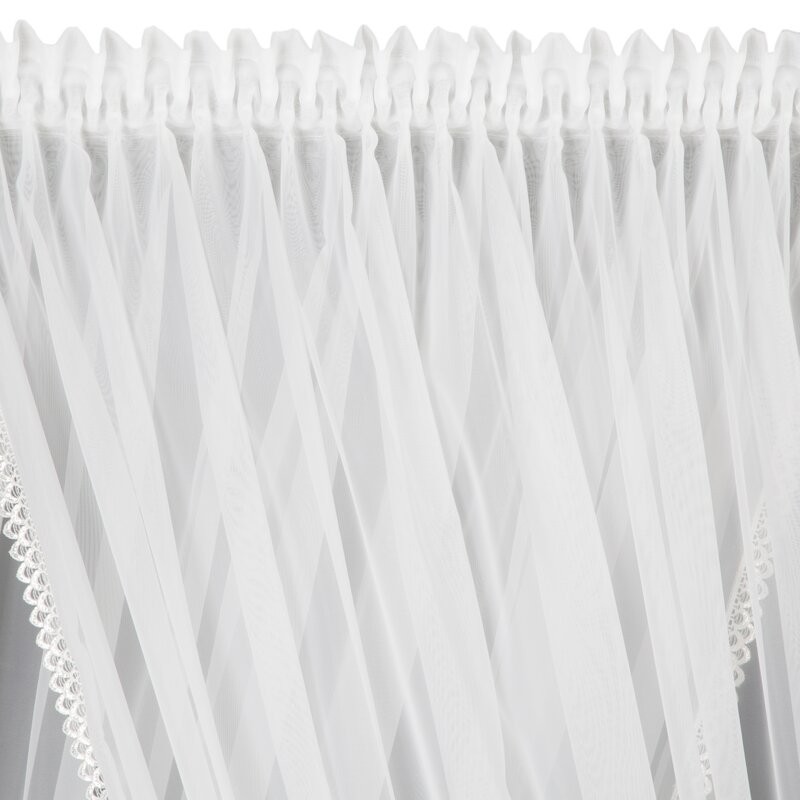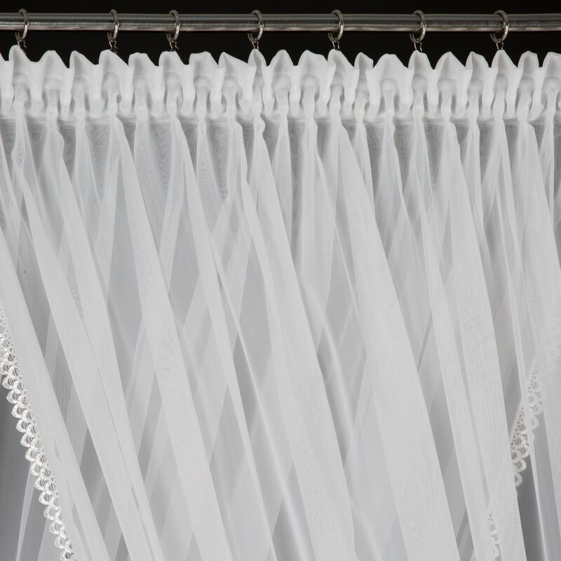 Firana biała z siateczki zdobiona na brzegach subtelną falbanką 140x270 cm taśma AGNESS