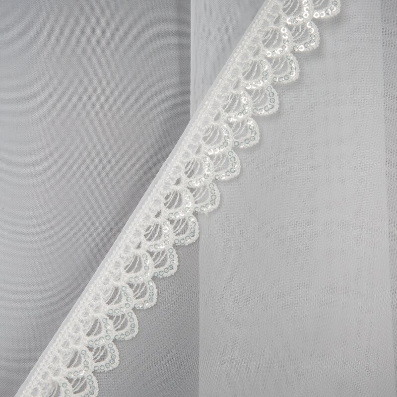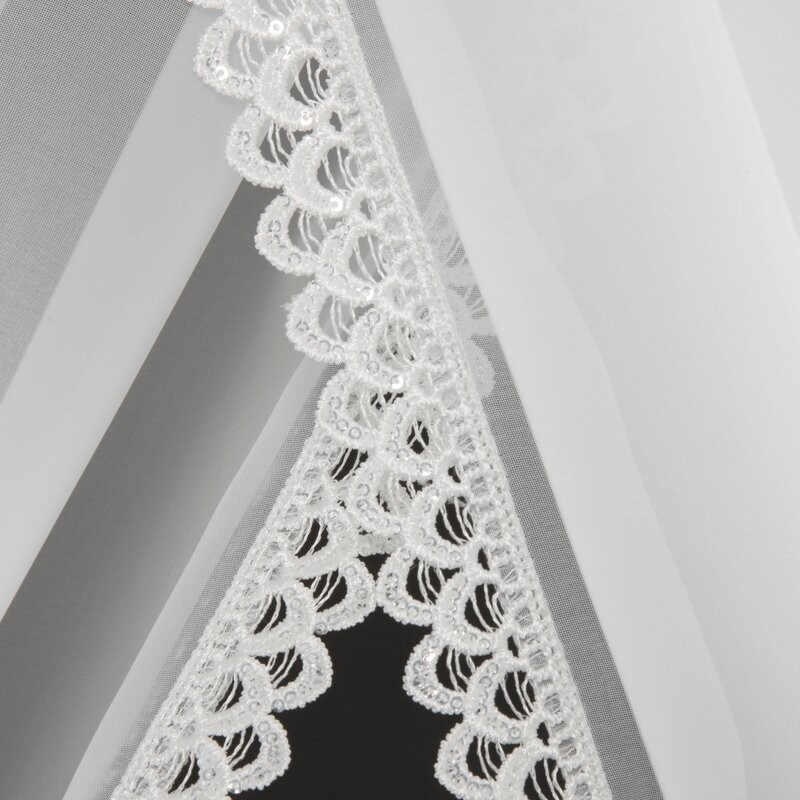 Firana biała z szyfonu zdobiona haftowaną aplikacją 400x145 cm taśma - LILI