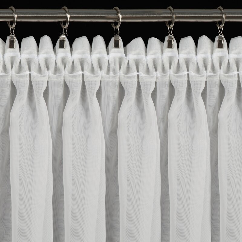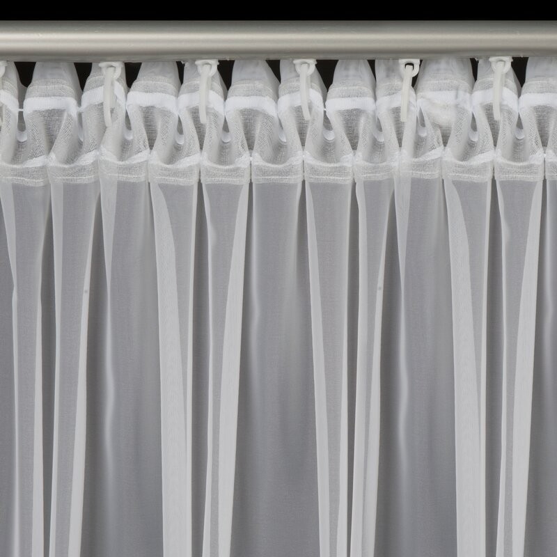 Firana gotowa o strukturze drobnej siatki szerokość: 140 cm, długość: 270 cm, kolor: biały, Gramatura: 111 GSM, Skład: 100% poliester
