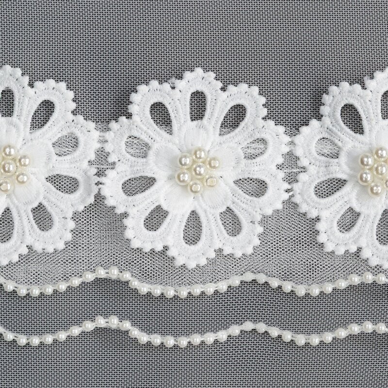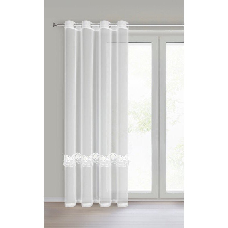 Firana gotowa zdobiona aplikacją szerokość: 350 cm, długość: 250 cm, kolor: biały, Gramatura: 70 GSM, Skład: 100% poliester