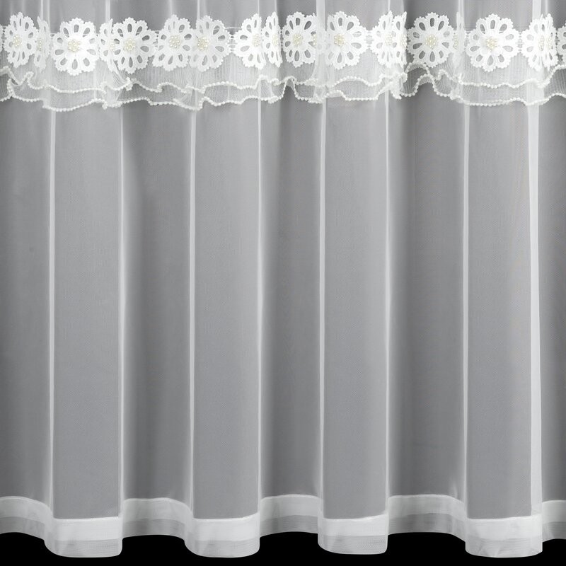 Firana gotowa zdobiona obszywką szerokość: 400 cm, długość: 80 cm, kolor: biały, Gramatura: 70 GSM, Skład: 100% poliester