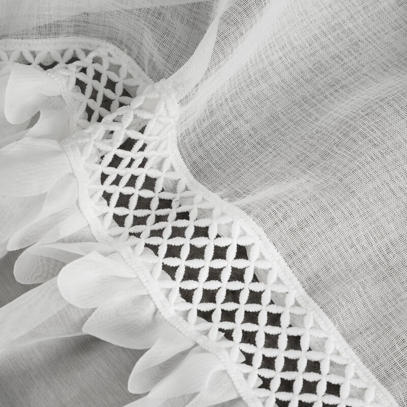 Firana LUISA z szyfonu zdobiona falbanami po bokach tkaniny w zestawie ozdobny troczek