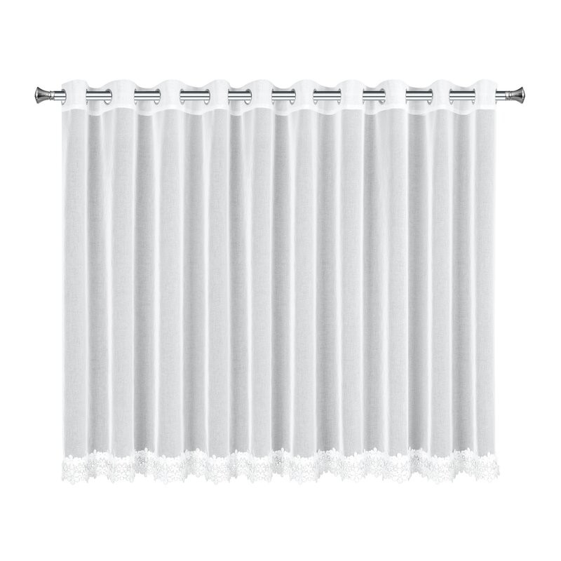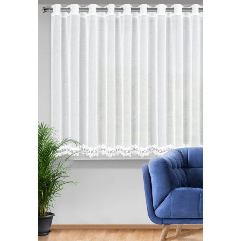 Firana gotowa z ozdobną obszywką szerokość: 140 cm, długość: 250 cm, kolor: biały, Skład: 100% poliester