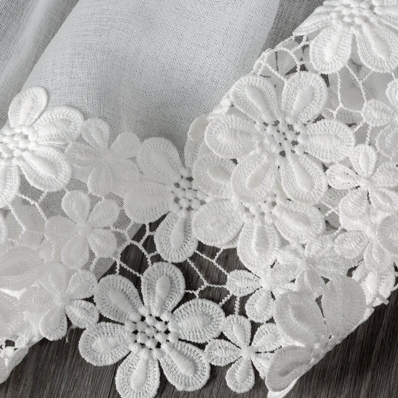 Firana gotowa zdobiona aplikacją z dekoracyjnym troczkiem szerokość: 140 cm, długość: 270 cm, kolor: biały, Gramatura: 60 GSM, Skład: 100% poliester