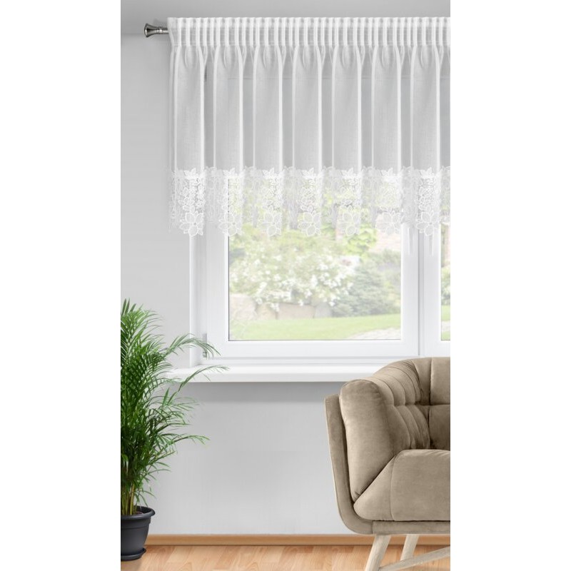 Firana gotowa zdobiona obszywką szerokość: 400 cm, długość: 80 cm, kolor: biały, Gramatura: 70 GSM, Skład: 100% poliester