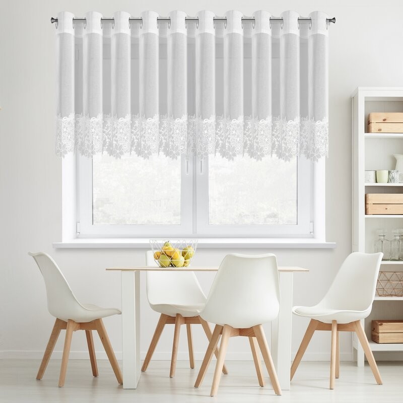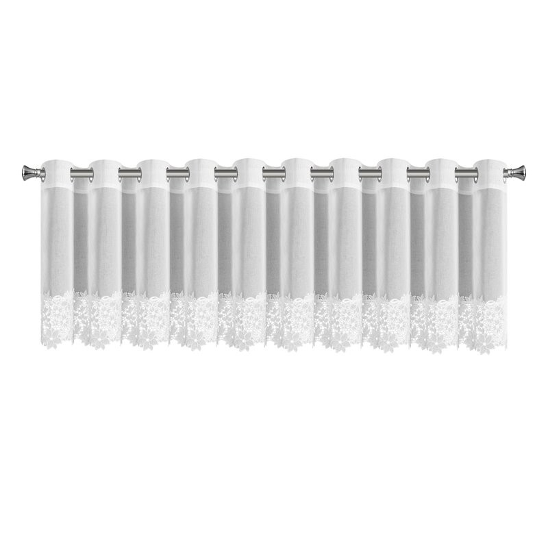 Firana gotowa zdobiona aplikacją szerokość: 140 cm, długość: 250 cm, kolor: biały, Gramatura: 70 GSM, Skład: 100% poliester