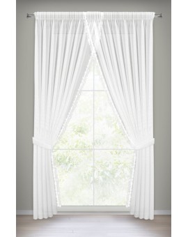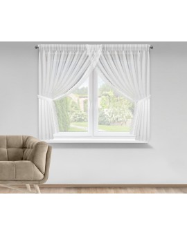 Firana LUISA z szyfonu zdobiona falbanami po bokach tkaniny w zestawie ozdobny troczek