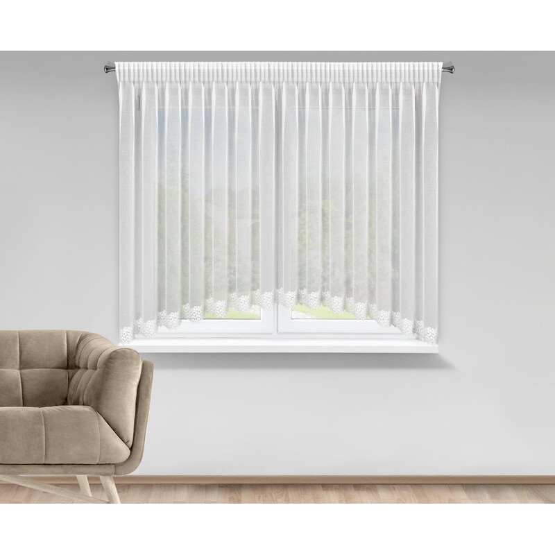 Firana gotowa zdobiona obszywką szerokość: 400 cm, długość: 80 cm, kolor: biały, Gramatura: 70 GSM, Skład: 100% poliester