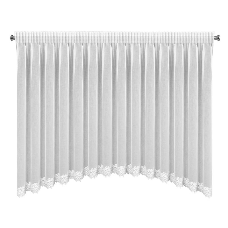 Firana gotowa zdobiona obszywką z dekoracyjnym łukiem szerokość: 400 cm, długość: 160 cm, kolor: biały, Gramatura: 70 GSM, Skład: 100% poliester
