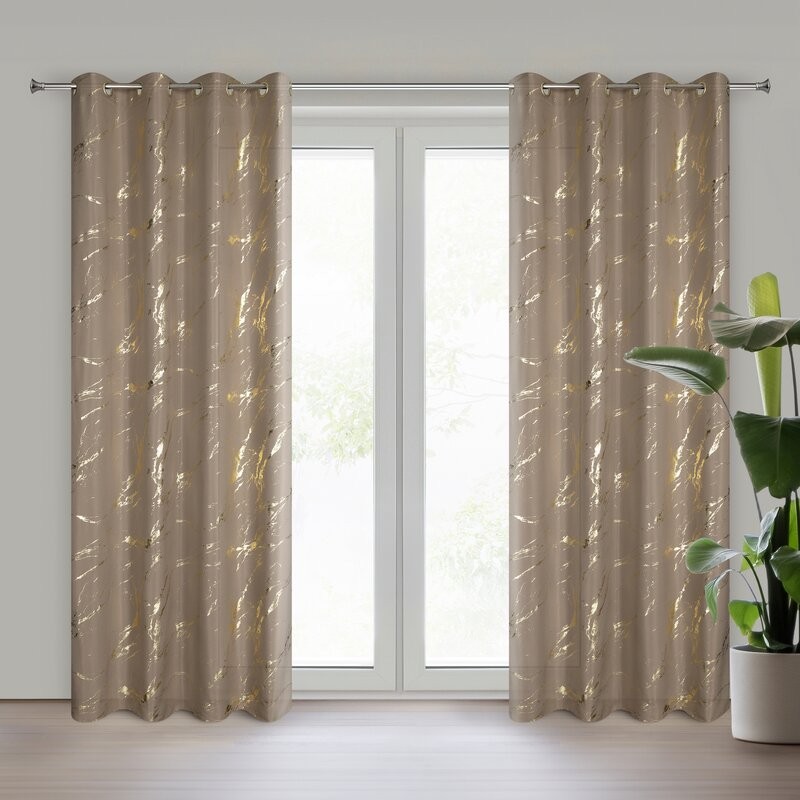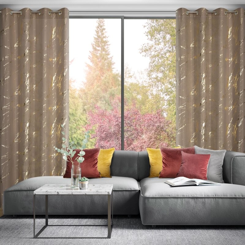 Zasłona LANI z delikatnej mikrofibry zdobiona nadrukiem marmurku ZŁOTE PRZELOTKI