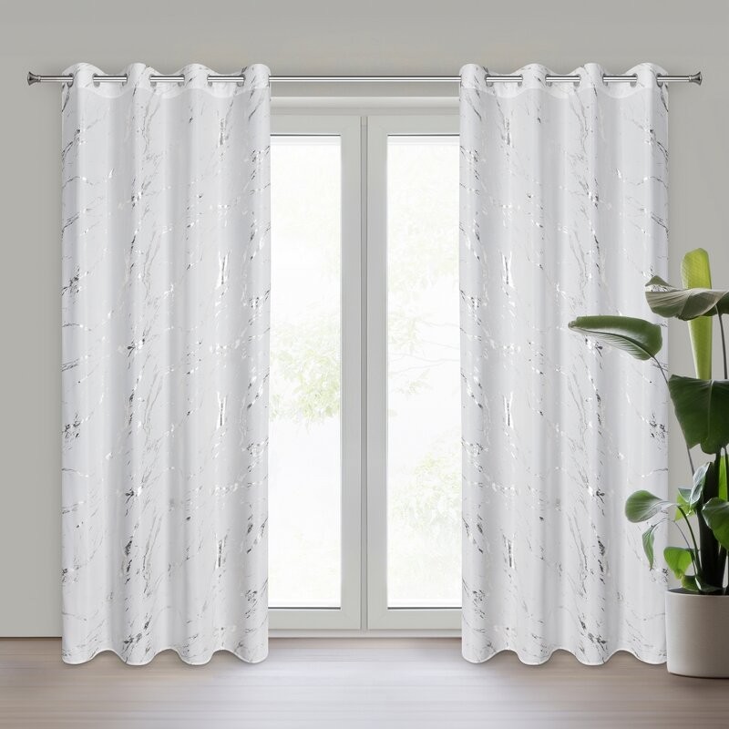 Zasłona gotowa z mikrofibry z nadrukiem szerokość: 140 cm, długość: 270 cm, kolor: biały, Gramatura: 75 GSM, Skład: 100% poliester