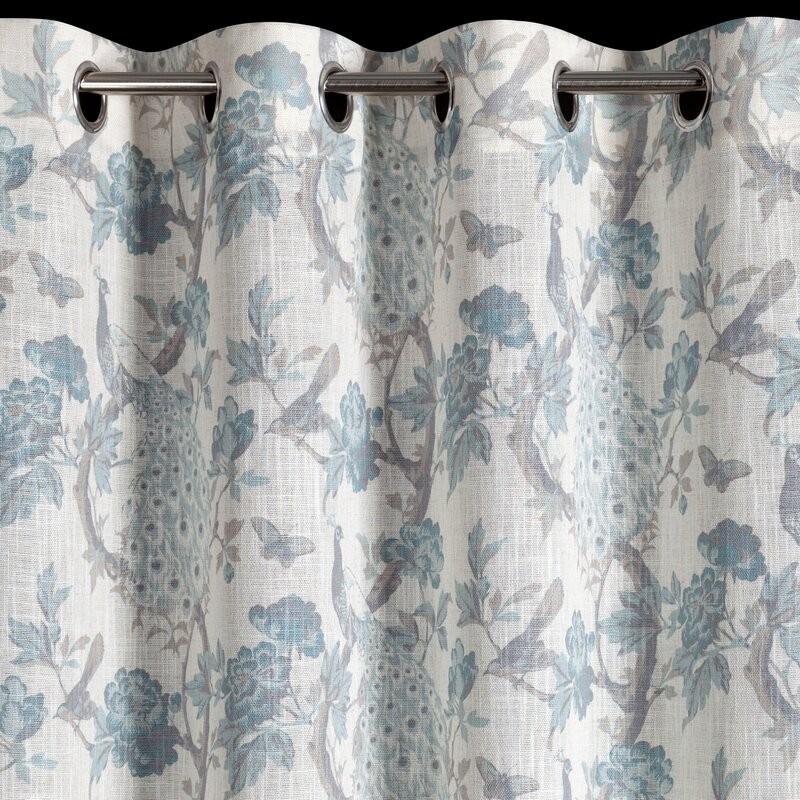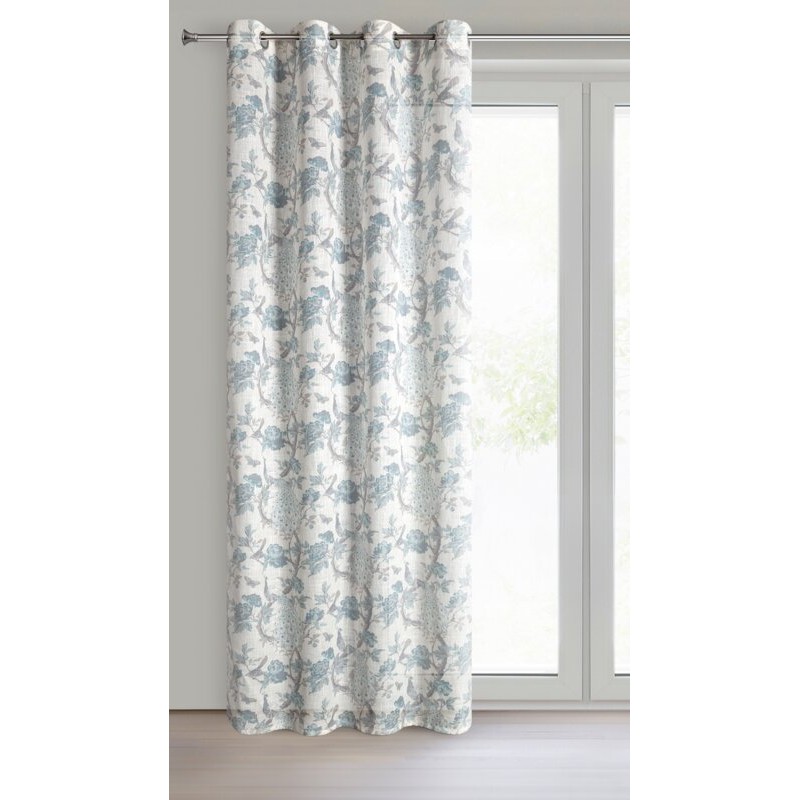 Zasłona z tkaniny w stylu eko z dodatkiem lnu, z kwiatowym nadrukiem szerokość: 140 cm, długość: 250 cm, kolor: naturalny, Gramatura: 220 GSM, Skład: 15% len, 85% poliester