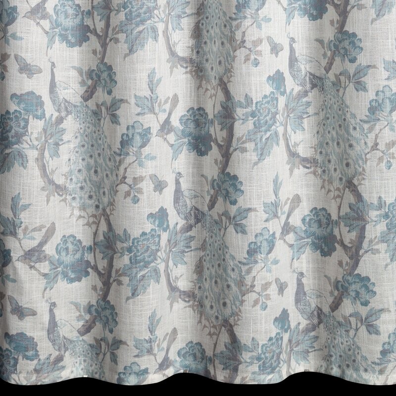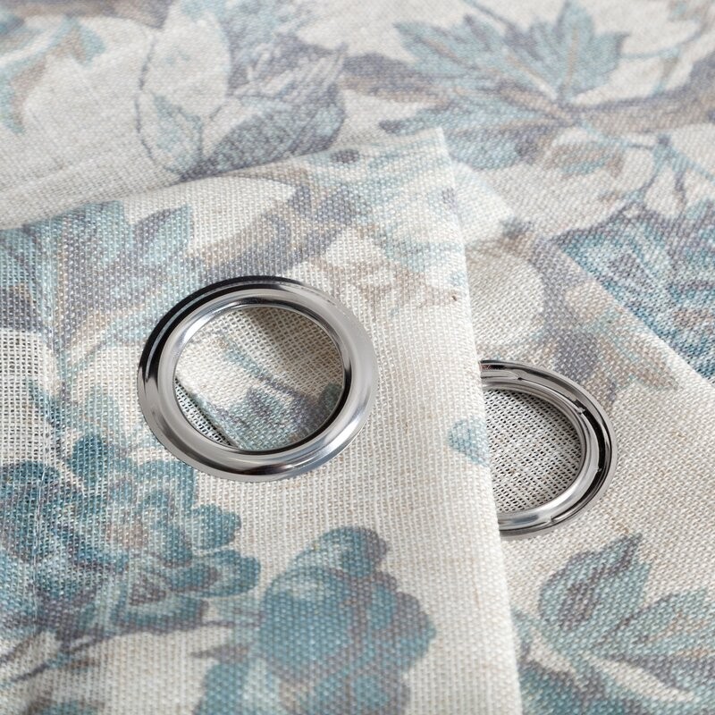 Zasłona DEMI z tkaniny z dodatkiem lnu w stylu eko zdobiona nadrukiem delikatnych kwiatów hortensji