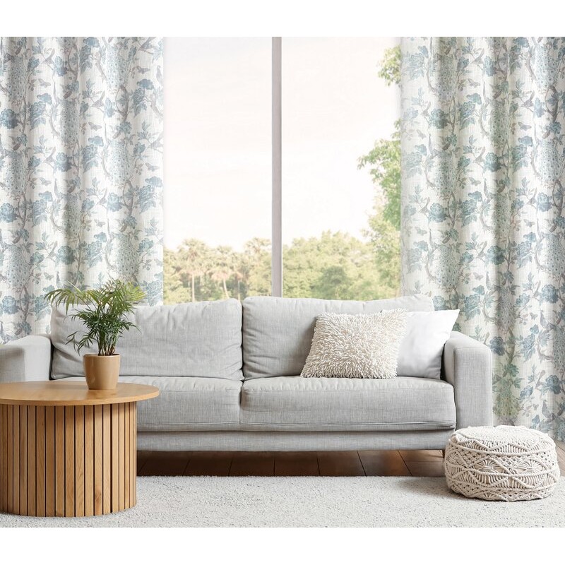Zasłona gotowa wykonana z półprzezroczystej tkaniny z dodatkiem lnu to propozycja dla osób ceniących naturalne materiały i subtelną elegancję. Tkanina w naturalnej kolorystyce doskonale komponuje się z wystrojem w stylu eko, skandynawskim lub klasycznym. Delikatny nadruk roślinny wprowadza do wnętrza lekkość i świeżość. Przelotki umożliwiają łatwe zawieszenie i estetyczne ułożenie zasłony w miękkie, regularne fale. Idealna do salonu, sypialni lub jadalni.