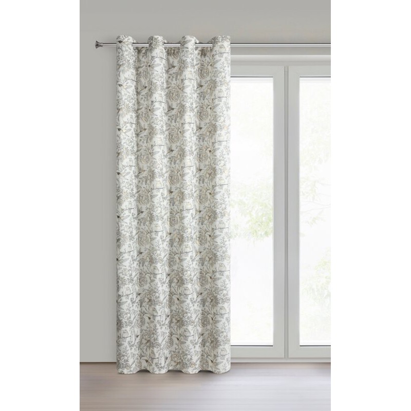 Zasłona z tkaniny w stylu eko z dodatkiem lnu, z kwiatowym nadrukiem szerokość: 140 cm, długość: 250 cm, kolor: naturalny, Gramatura: 220 GSM, Skład: 15% len, 85% poliester