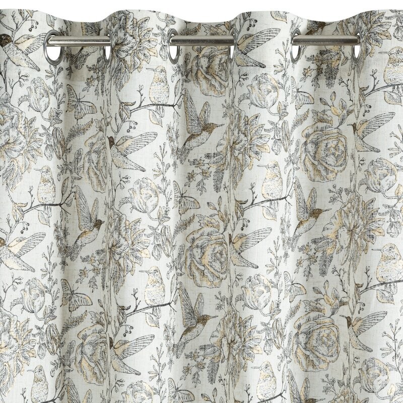 Zasłona gotowa z motywem botanicznym, z domieszką lnu szerokość: 140 cm, długość: 250 cm, kolor: naturalny, Gramatura: 220 GSM, Skład: 15% len, 85% poliester