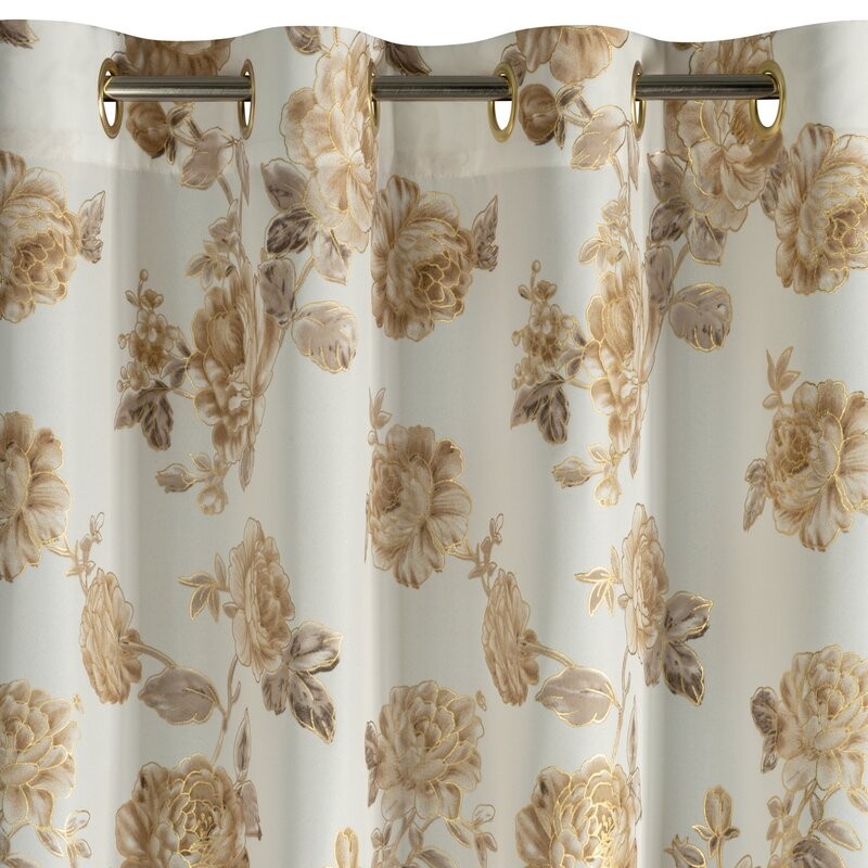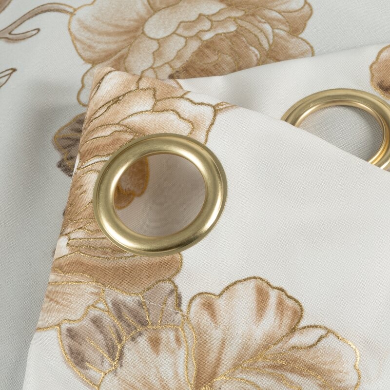 Dzięki złotym przelotkom montaż jest szybki i wygodny, a zasłona efektownie układa się w miękkie fale.