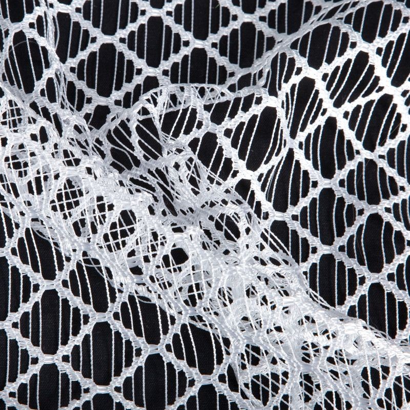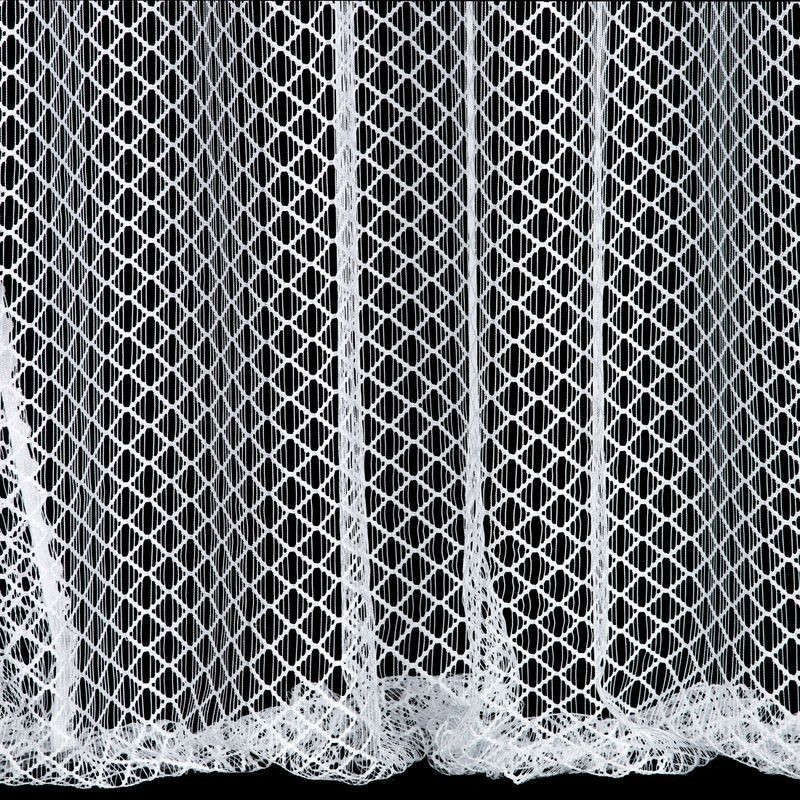 Nowoczesna firana z nieregularnej siateczki o subtelnym połysku i róznej wielkości oczek. Doskonała również w roli dekoracyjnej zasłony. Nie należy wybielać. szerokość: 300 cm, długość: 270 cm, kolor: biały, Gramatura: 75 GSM, Skład: 100% poliester