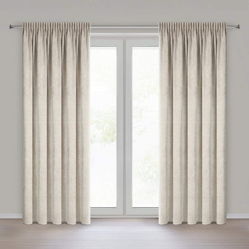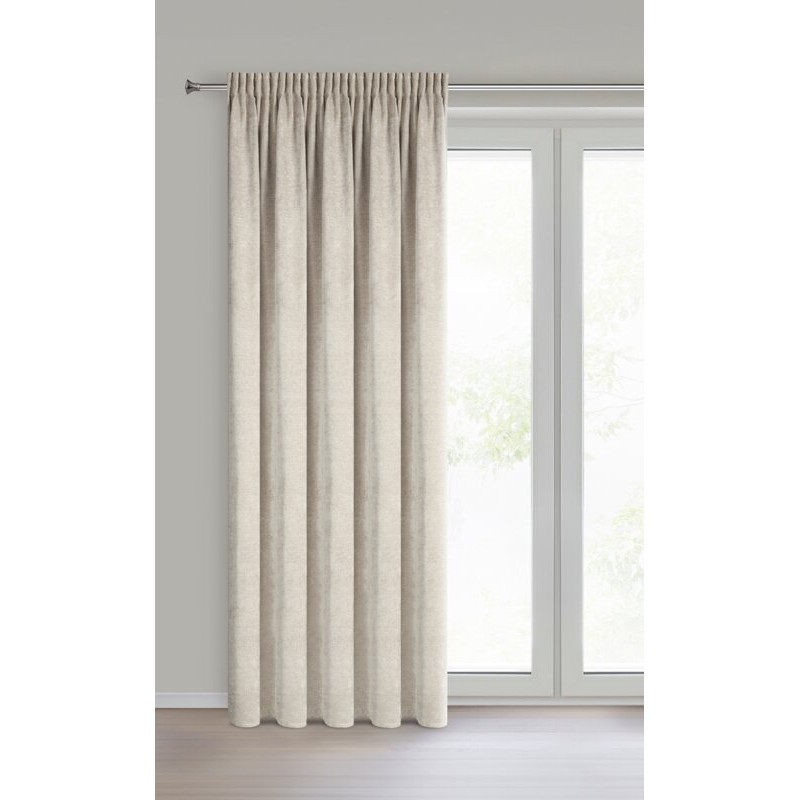 Zasłona gotowa z tkaniny szenilowej szerokość: 135 cm, długość: 250 cm, kolor: jasnobeżowy, Gramatura: 280 GSM, Skład: 100% poliester