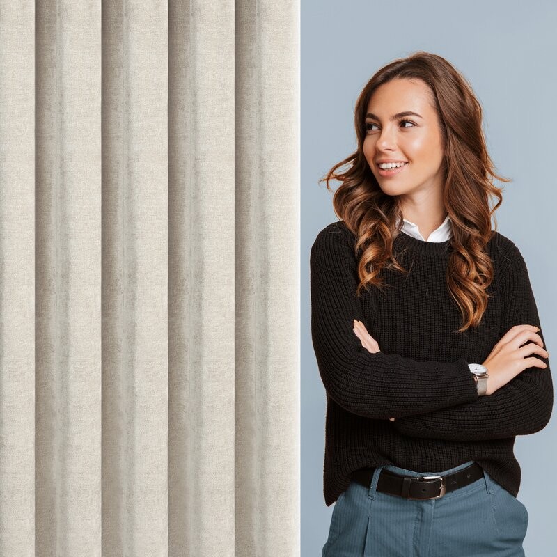 Zasłona beżowa o szenilowej strukturze 140x270 cm taśma - NESKA