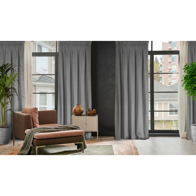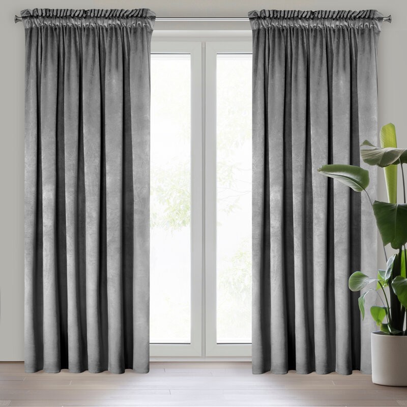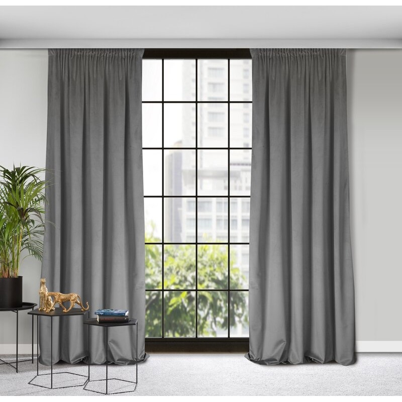 Zasłona welwetowa jednokolorowa szerokość: 140 cm, długość: 250 cm, kolor: stalowy, Gramatura: 200 GSM, Skład: 100% poliester