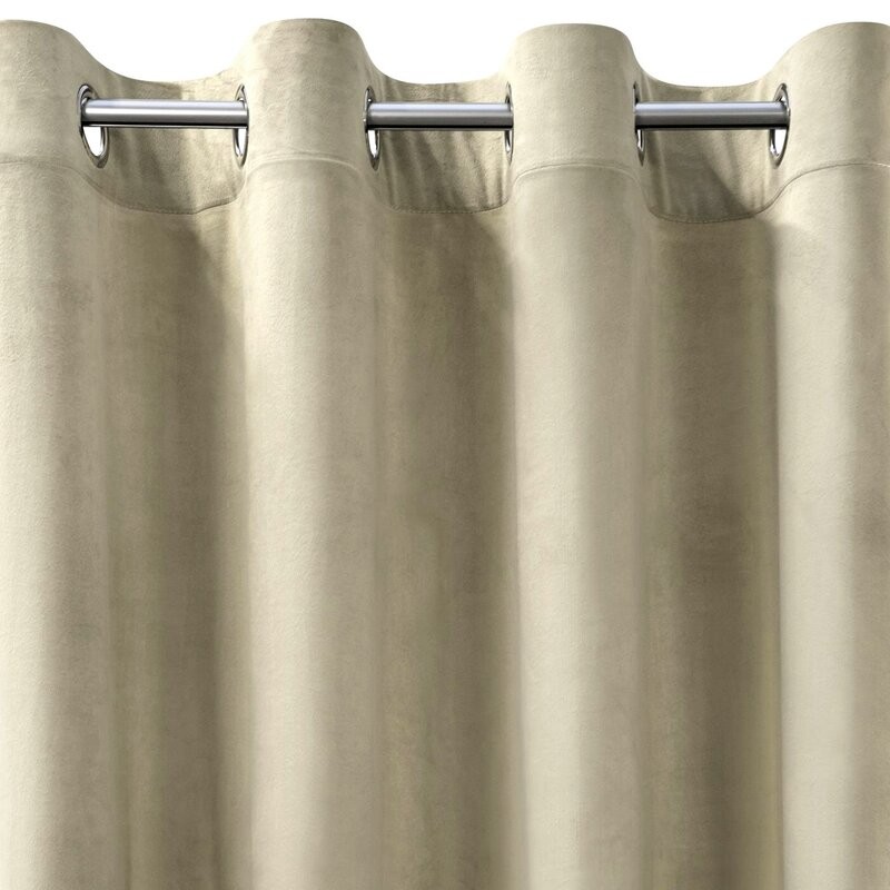 Miękka zasłona z welwetu o matowym wykończeniu. Mięsista tkanina o średnich właściwościach zaciemniających nadaje wnętrzu eleganckiego charakteru. szerokość: 140 cm, długość: 250 cm, kolor: miodowy, Gramatura: 200 GSM, Skład: 100% poliester