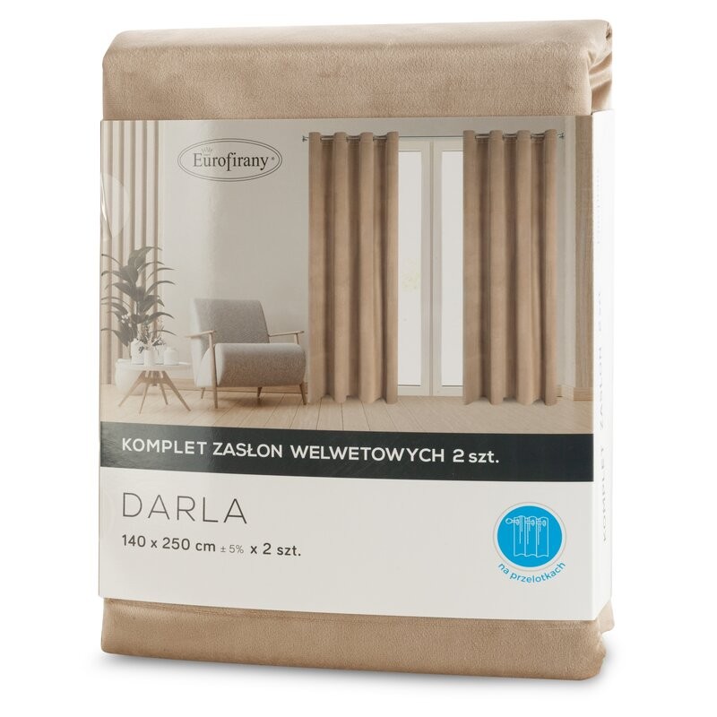 Zasłona welwetowa jednokolorowa szerokość: 140 cm, długość: 270 cm, kolor: ciemnobeżowy, Gramatura: 200 GSM, Skład: 100% poliester