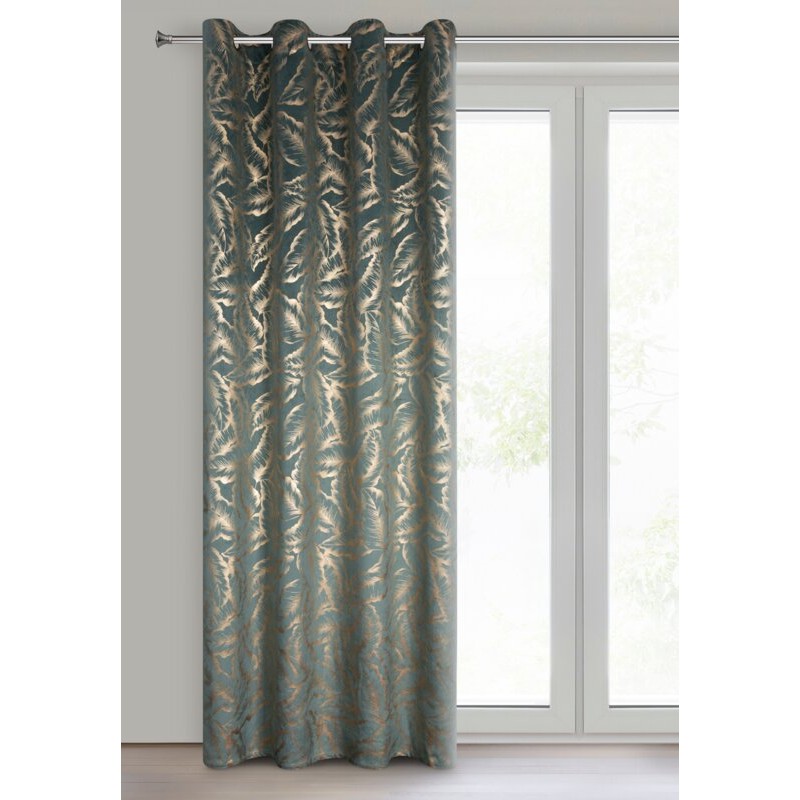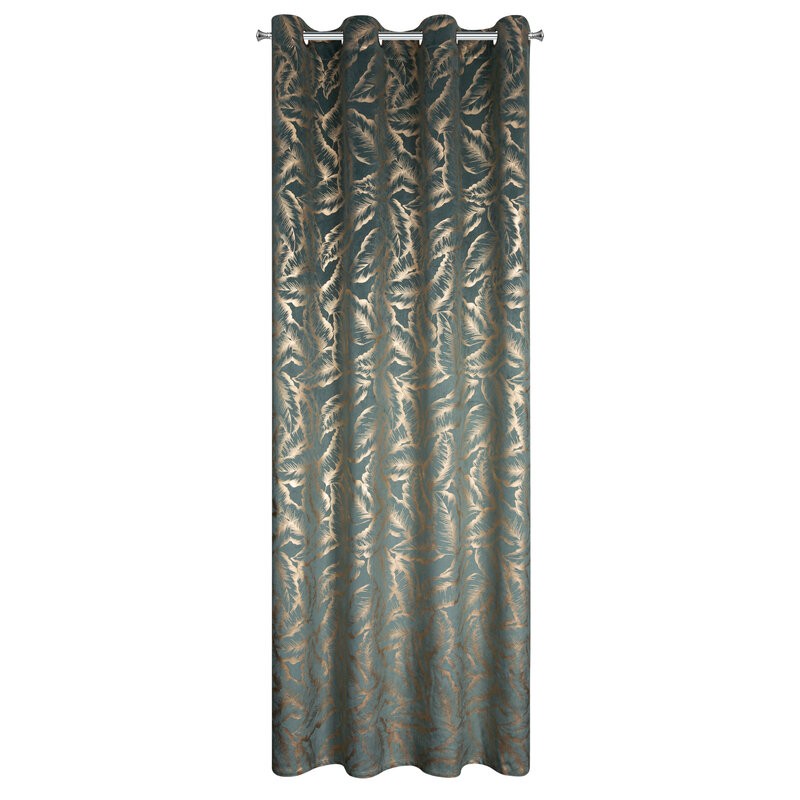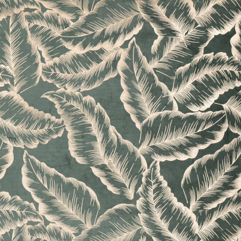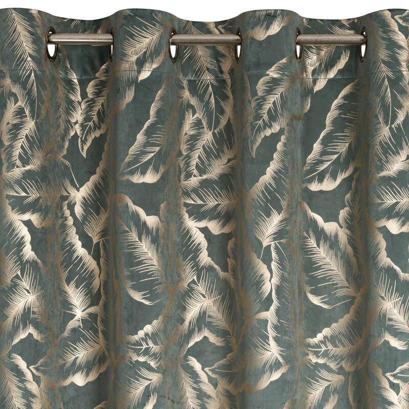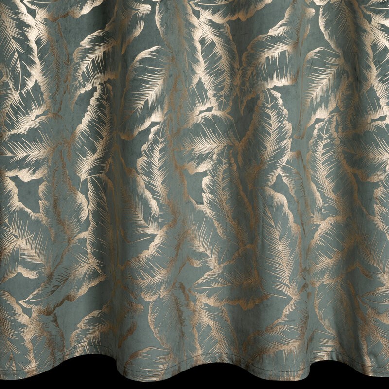 Zasłona TULIA z miękkiego welwetu z metalicznym nadrukiem z motywem liści bananowca
