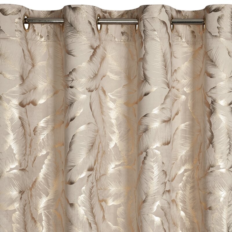 Zasłona gotowa welwetowa z błyszczącym nadrukiem szerokość: 140 cm, długość: 250 cm, kolor: jasnobeżowy, Gramatura: 200 GSM, Skład: 100% poliester