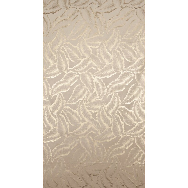 Zasłona biało szampańska zdobiona nadrukiem liści 140x250 cm złota przelotka - MILENA