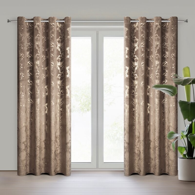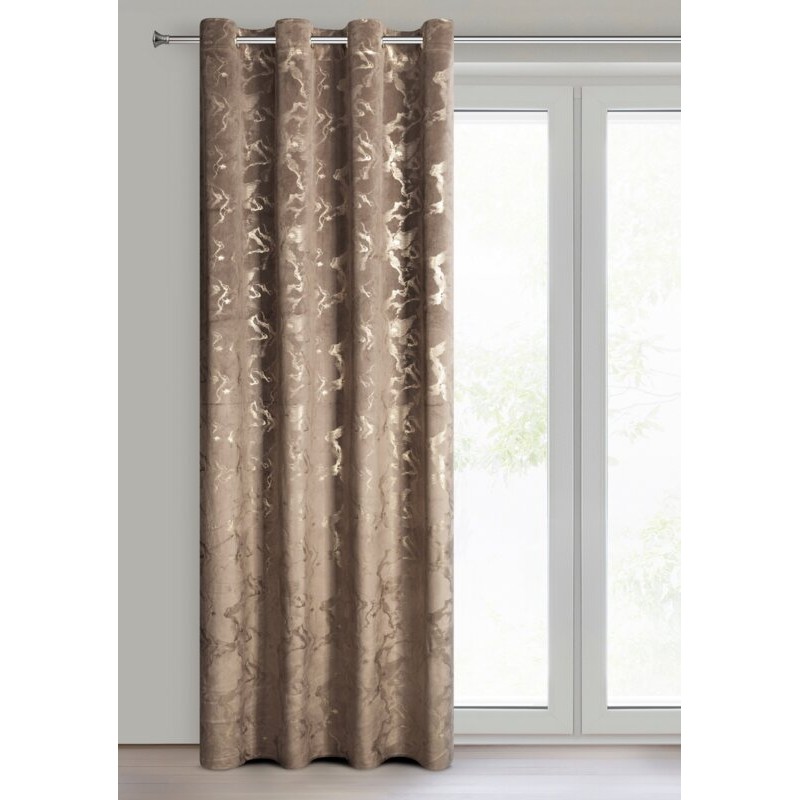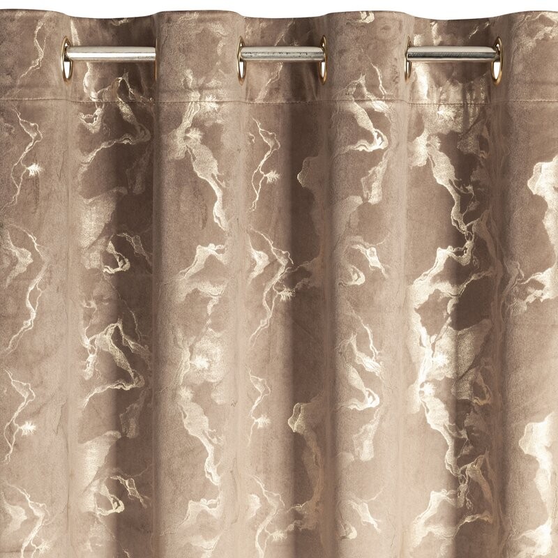 Zasłona welwetowa z metalicznym nadrukiem od dołu szerokość: 140 cm, długość: 270 cm, kolor: beżowy, Gramatura: 200 GSM, Skład: 100% poliester
