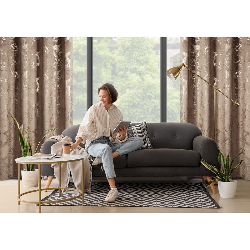 Zasłona MARIELA z welwetu zdobiona metalicznym nadrukiem Eurofirany