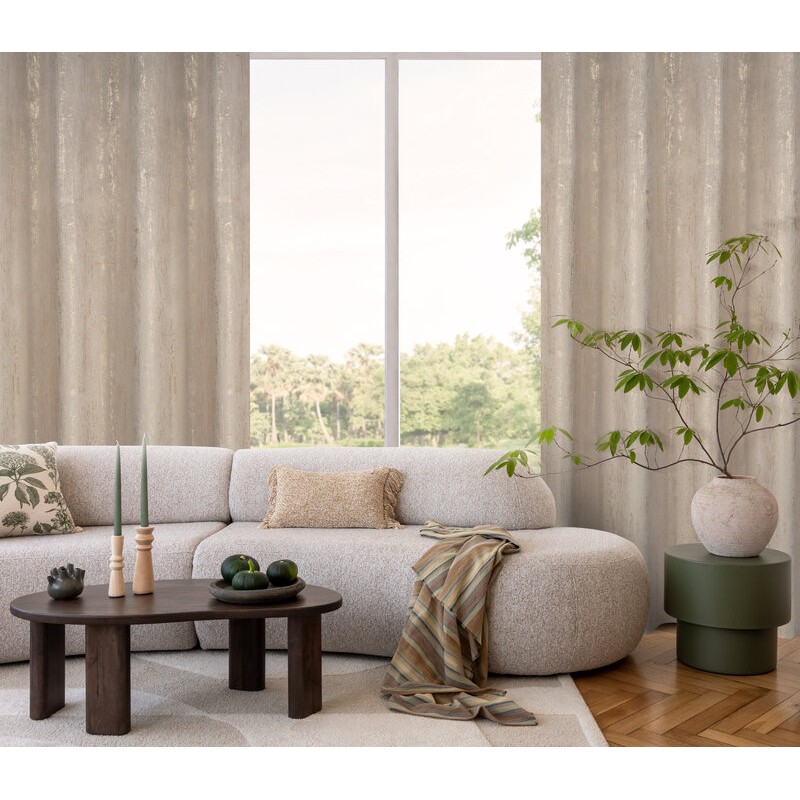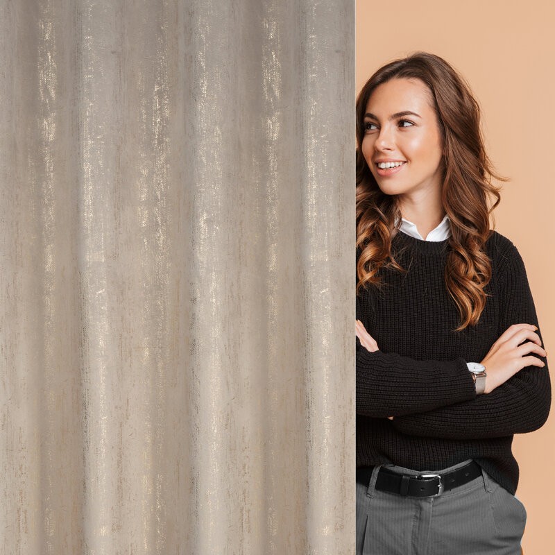 Zasłona welwetowa z metalicznym nadrukiem od dołu szerokość: 140 cm, długość: 270 cm, kolor: beżowy, Gramatura: 200 GSM, Skład: 100% poliester