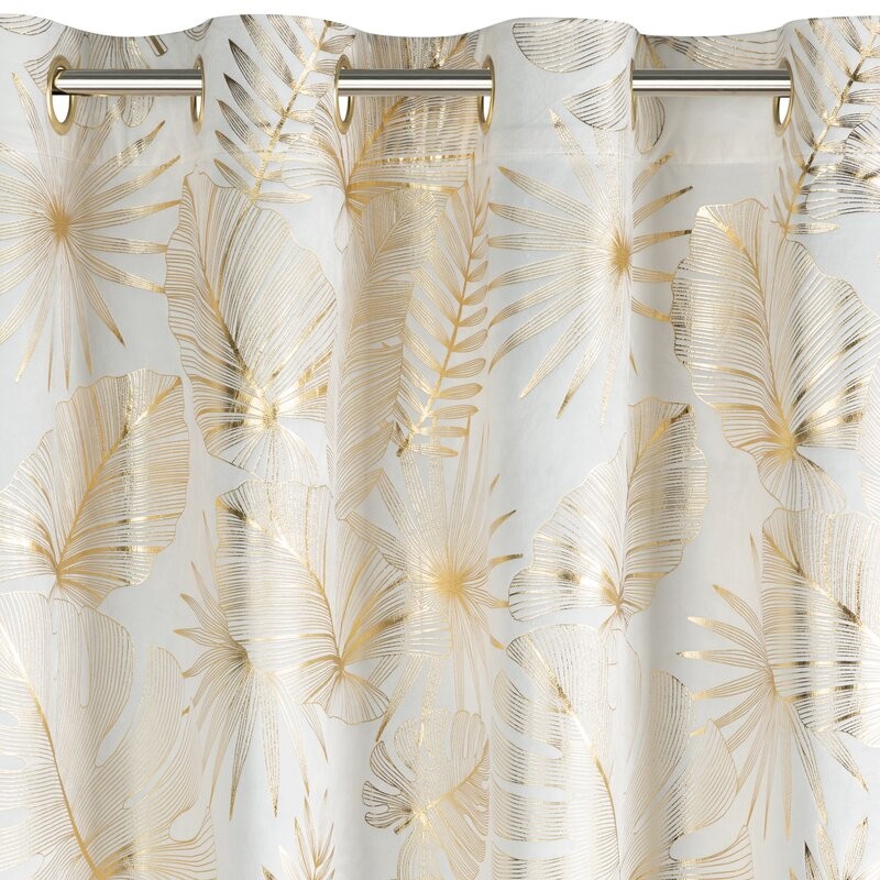 Zasłona DEBRA z miękkiego welwetu z metalicznym nadrukiem z motywem liści palmy