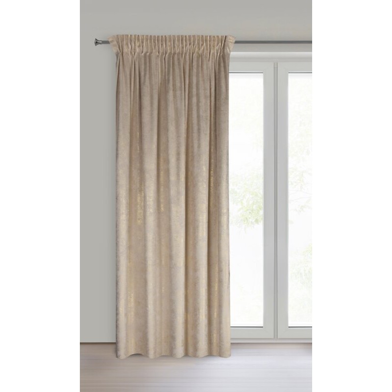 Zasłona gotowa welwetowa z błyszczącym nadrukiem szerokość: 140 cm, długość: 250 cm, kolor: beżowy, Gramatura: 200 GSM, Skład: 100% poliester