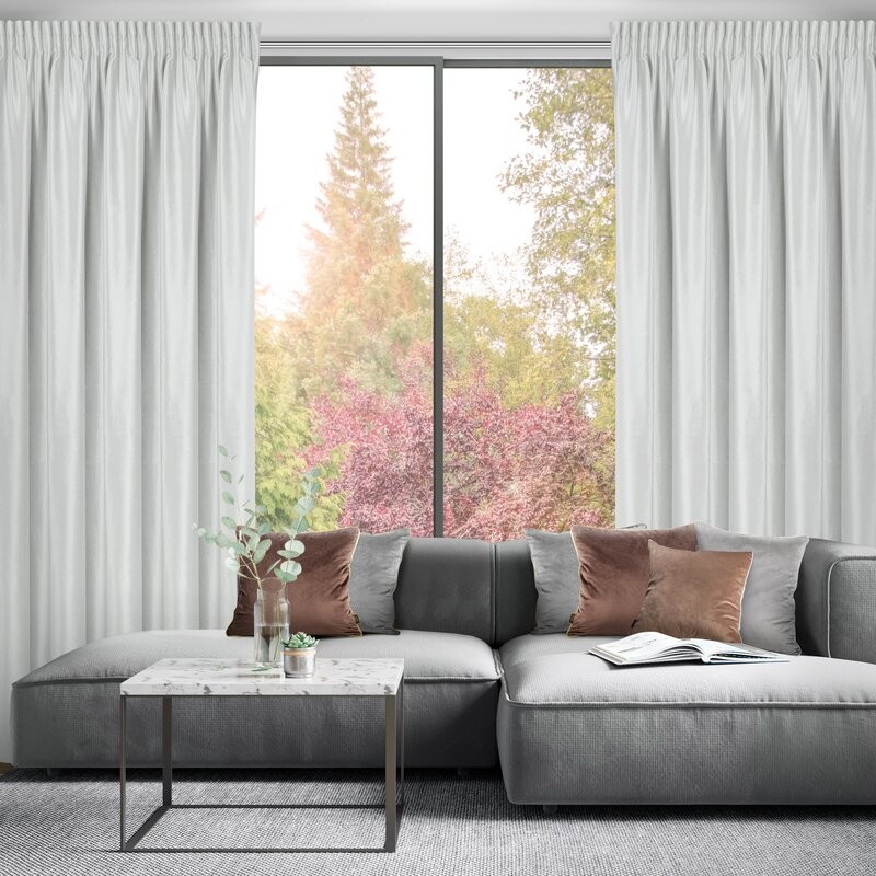 Zasłona gotowa welwetowa z nadrukiem błyszczącym szerokość: 140 cm, długość: 270 cm, kolor: biały, Gramatura: 200 GSM, Skład: 100% poliester