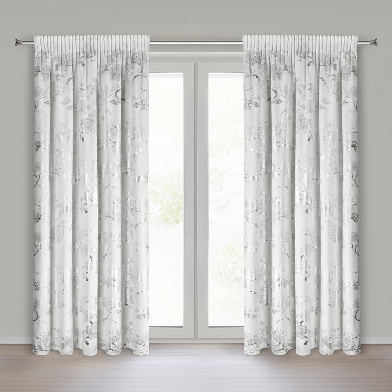 Zasłona gotowa z błyszczącym nadrukiem szerokość: 140 cm, długość: 250 cm, kolor: kremowy, Gramatura: 200 GSM, Skład: 100% poliester