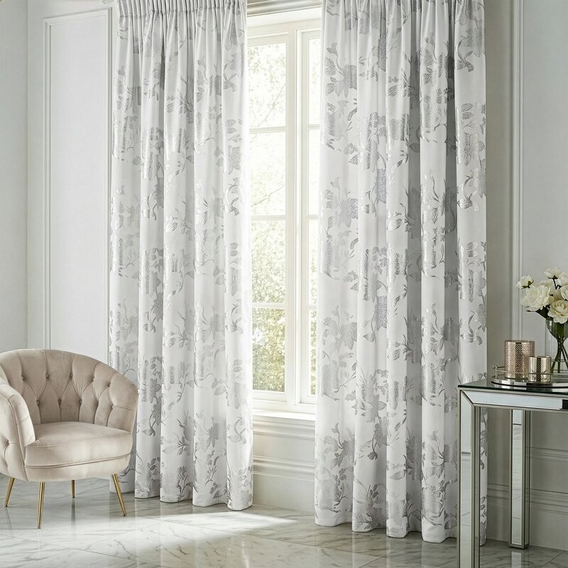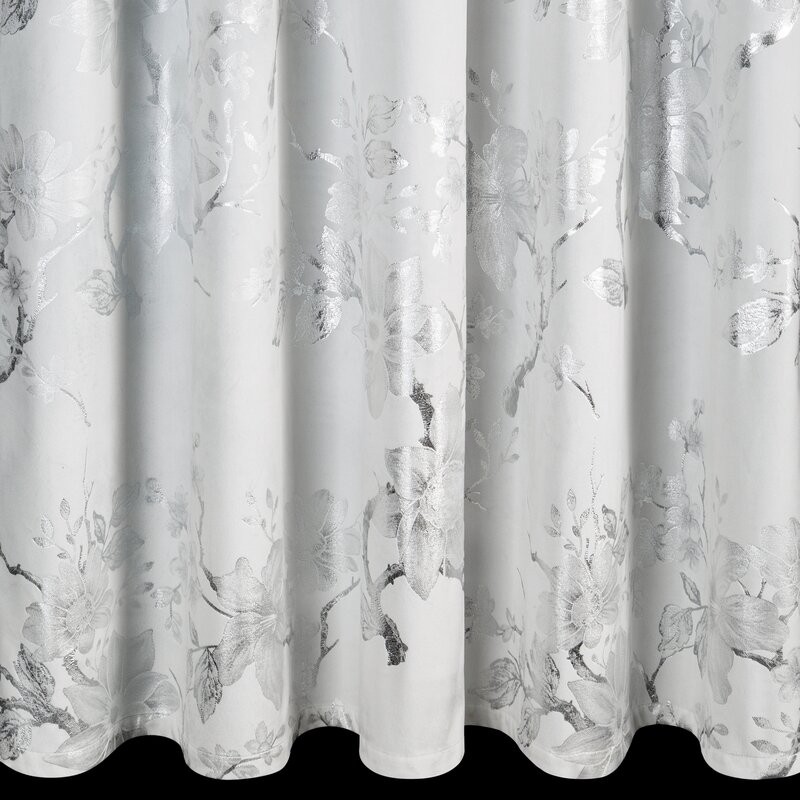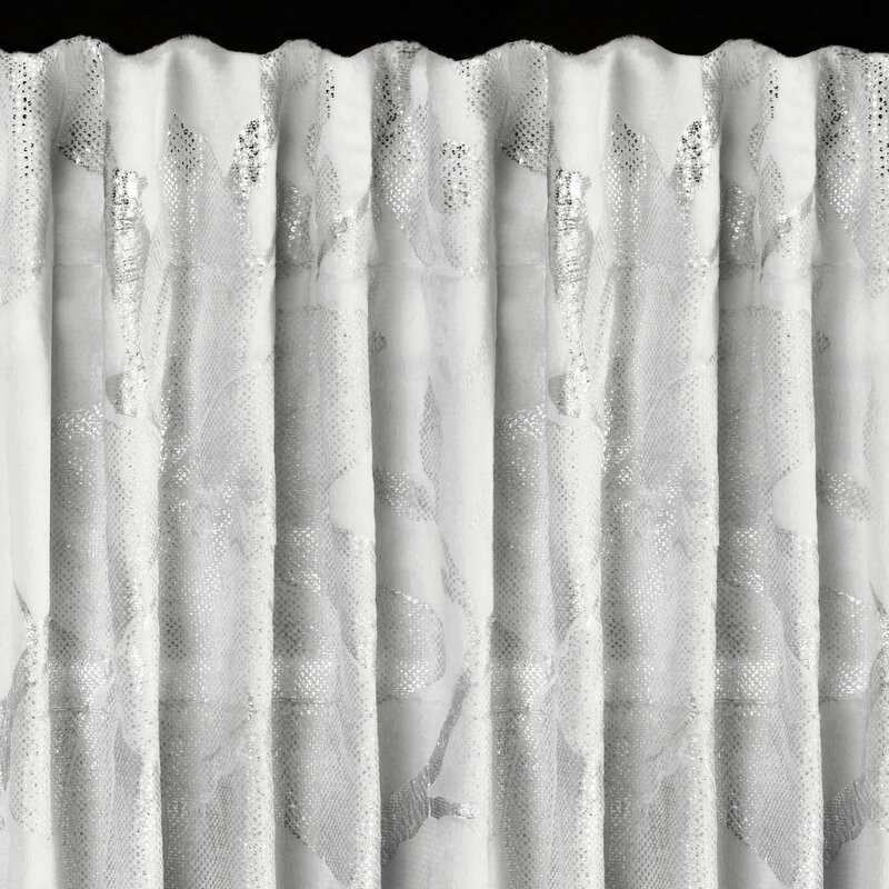 Zasłona gotowa welwetowa z błyszczącym nadrukiem szerokość: 140 cm, długość: 250 cm, kolor: srebrny, Gramatura: 200 GSM, Skład: 100% poliester