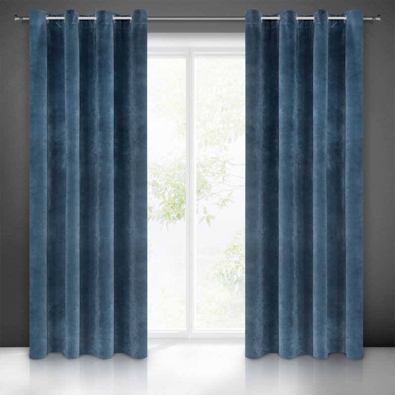 Zasłona welwetowa jednokolorowa szerokość: 140 cm, długość: 270 cm, kolor: niebieski, Gramatura: 330 GSM, Skład: 100% poliester