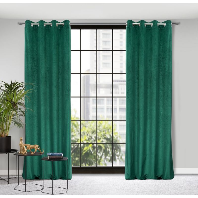 Miękkie welwetowe tkaniny subtelnie i elegancko dopełniają aranżacji wnętrza, podkreślając jego styl. Efektowna zasłona z jednokolorowego miękkiego welwetu przyciąga wzrok za sprawą wytłaczanego wzoru, który pokrywa całą jej powierzchnię. Biegnący z góry na dół falujący wzór, sprawia że tkaninamiękko spływa z karnisza, dodając wnętrzu łagodności i ciepła. Praktyczne przelotki sprawiają, że z zmiana dekoracji trwa tylko krótką chwilę, a po zawieszeniu na karniszu zasłona układa się w miękkie i delikatne fale. Zasłona jest łatwa w prasowaniu, dobrze kryje okno ograniczając światło słoneczne, chroniąc wnętrze przed nadmiarem światła i zapewniając przytulny klimat.