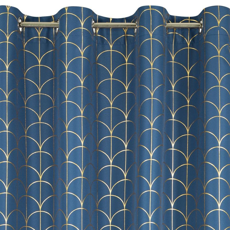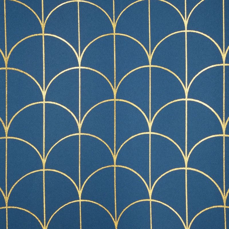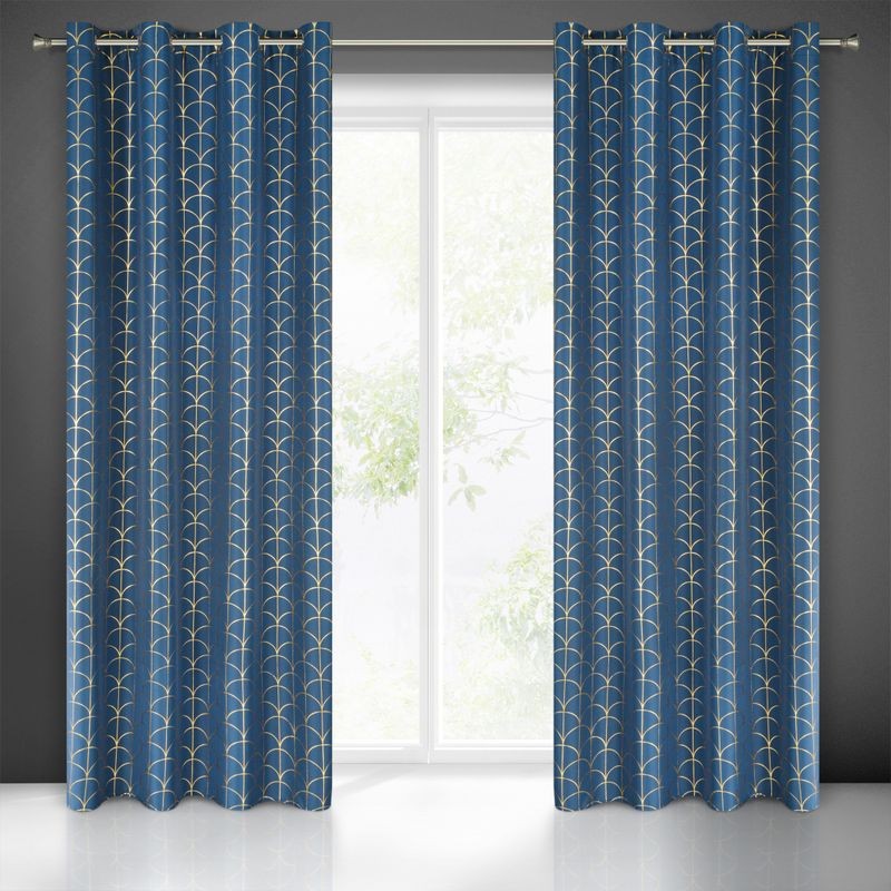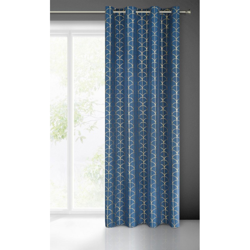 Zasłona gotowa ze złotym nadrukiem szerokość: 140 cm, długość: 250 cm, kolor: niebieski, Gramatura: 140 GSM, Skład: 100%poliester