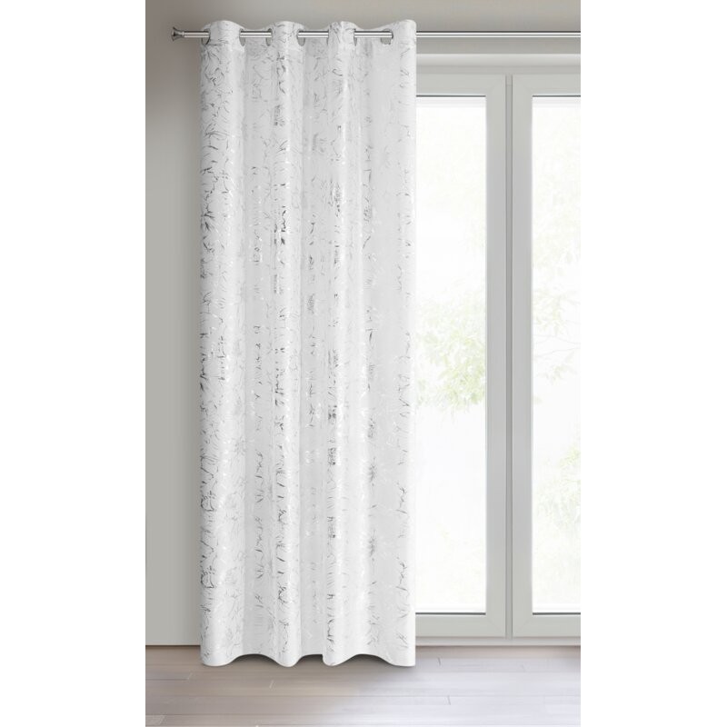 Zasłona gotowa ze srebrnym nadrukiem szerokość: 140 cm, długość: 300 cm, kolor: biały, Gramatura: 50 GSM, Skład: 100% poliester