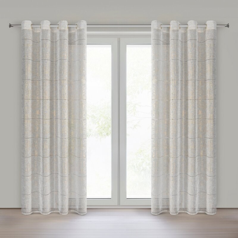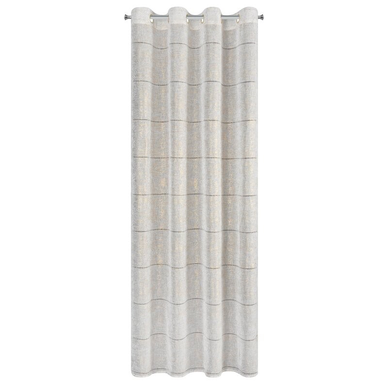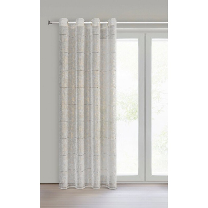 Firana gotowa SIBEL z jasnozłotym nadrukiem drobnych kwadracików