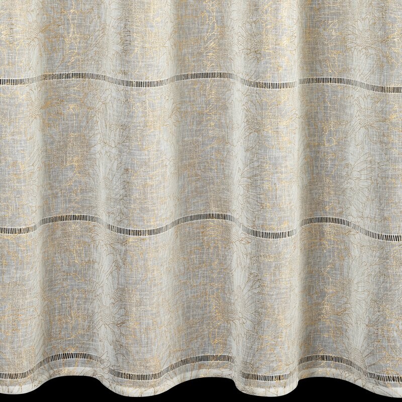 Zasłona KERI z motywem egzotycznych liści podkreślona złocistym nadrukiem