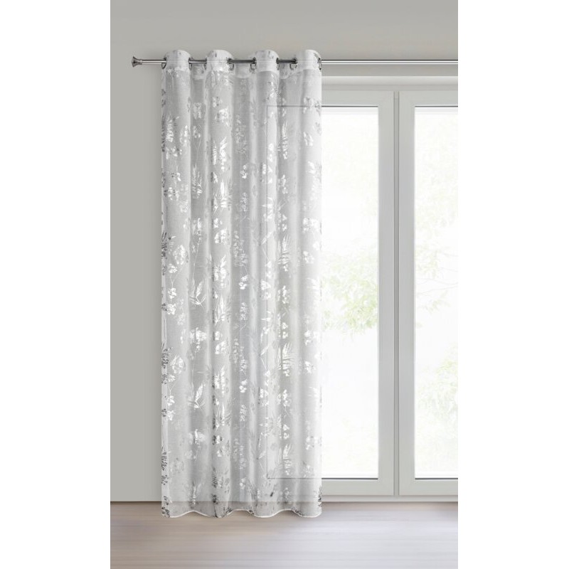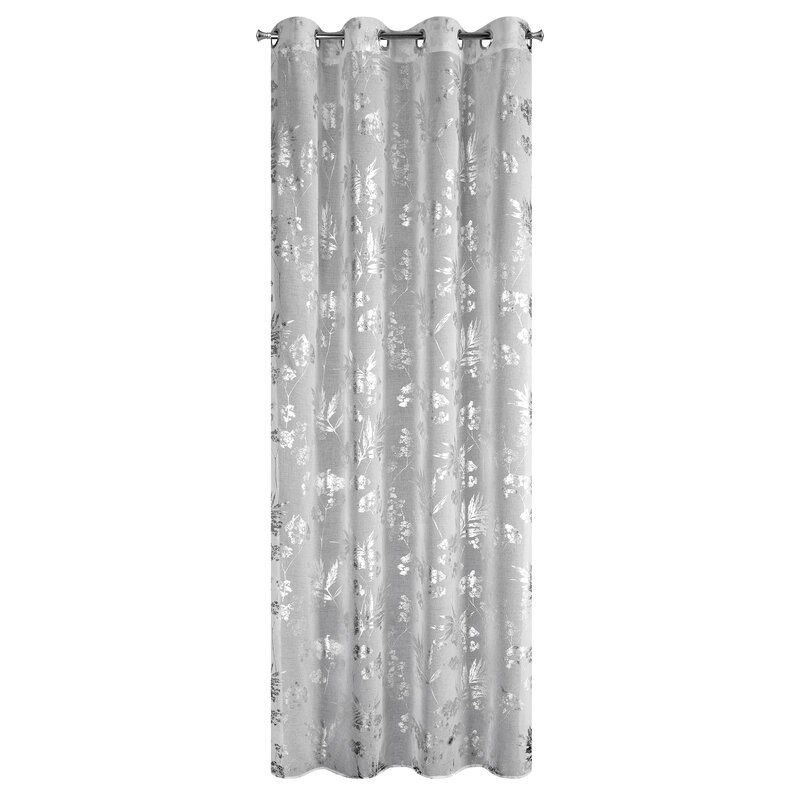 Klasyczna zasłona z tkaniny o strukturze płótna zdobiona pastelowym nadrukiem kwiatów ogrodowych. Średni stopień zaciemnienia. Tkanina łatwa w prasowaniu. szerokość: 140 cm, długość: 250 cm, kolor: szary, Gramatura: 130 GSM, Skład: 100% poliester